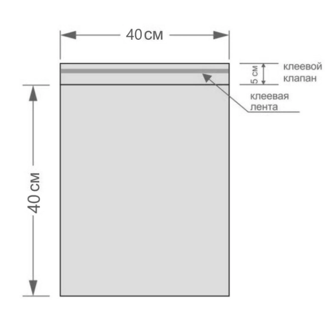 Пакеты ПВД размером 40*40 см с клеевым клапаном 5 см изготовлены из первичного полиэтилена высокого давления (ПВД) плотностью 75 мкм.